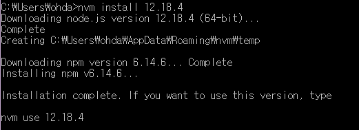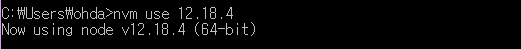 설치 완료 되면 nvm use 12.18.4 를 입력한다.