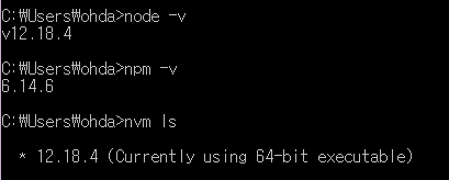 설치 후 현재 12.18.4ver 가 최신이므로 cmd 창에 nvm install 12.18.4 를 입력하여 설치한다