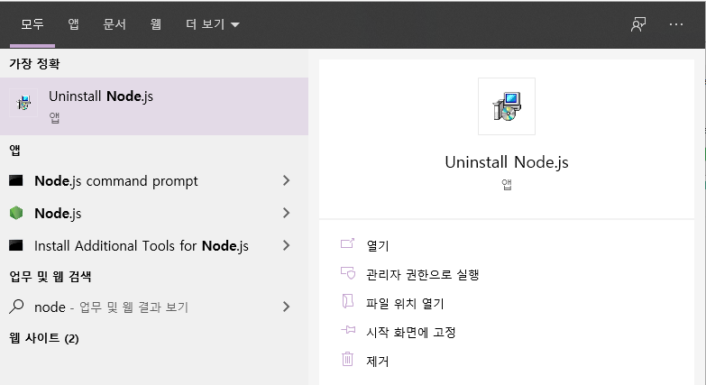 설치하기 이전에 기존 컴퓨터에 있는 node랑 npm을 모두 삭제해야 한다. (파일 경로에 해당되는 폴더까지 모두)