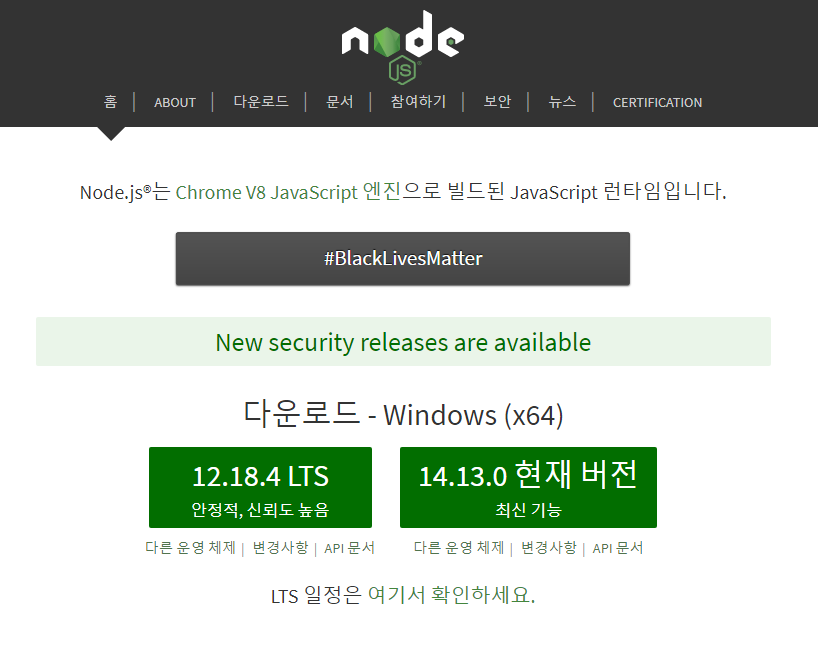 먼저, 기존에 있던 node의 버전이 12.~으로 최신 버전이었는데, 포스팅에선 LTS 버전을 깔라고 하셔서